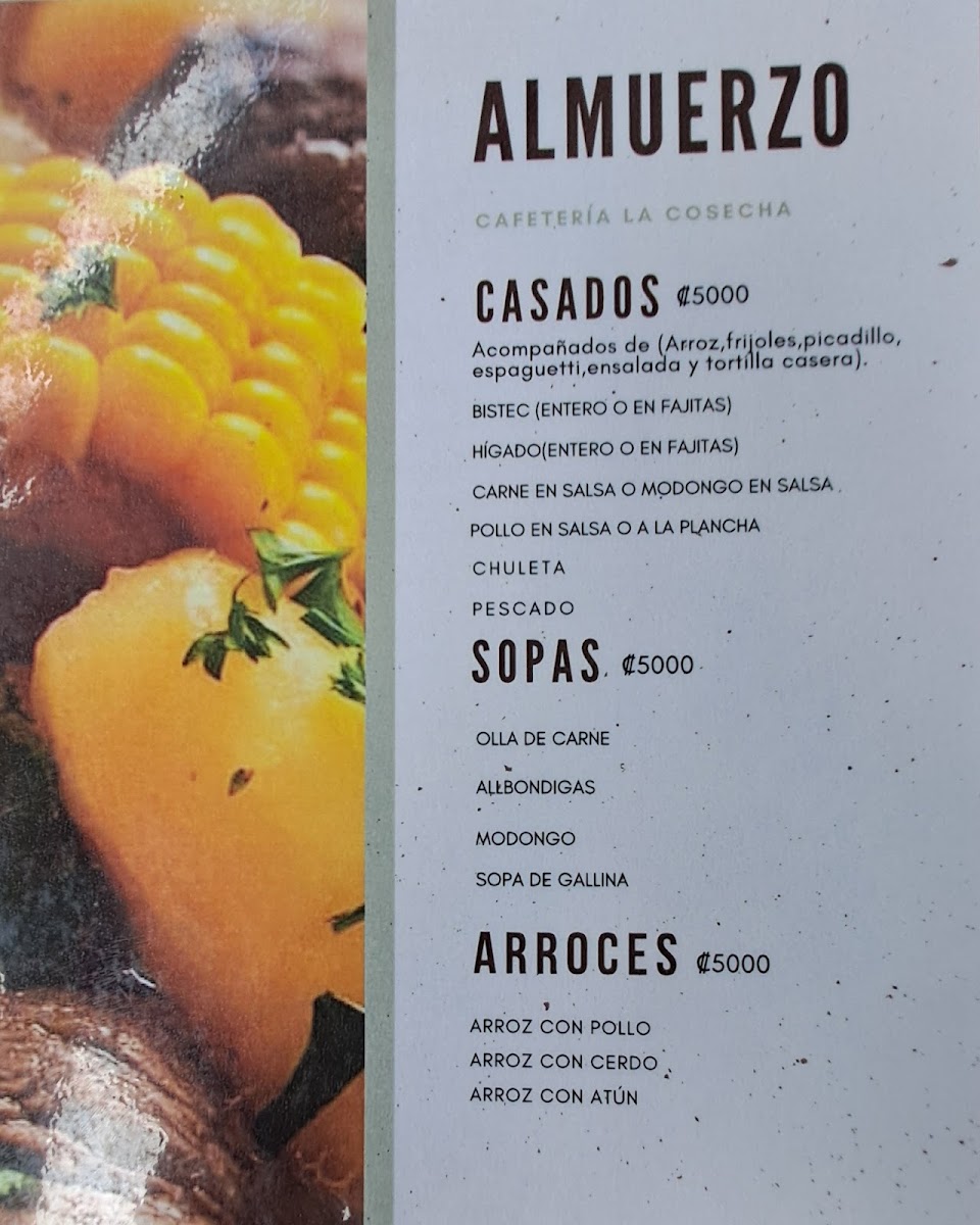 Cafetería Cosecha Menu